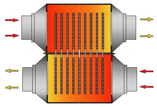 氣—氣式熱管余熱回收器:從高溫煙氣中、熱空氣中、廢蒸汽中吸收余熱,加熱助燃空氣,以降低燃料消耗,_燃燒工況,從而達到節能的目的;也可加熱其他氣體介質或做為烘干機使用,烘干物料等。